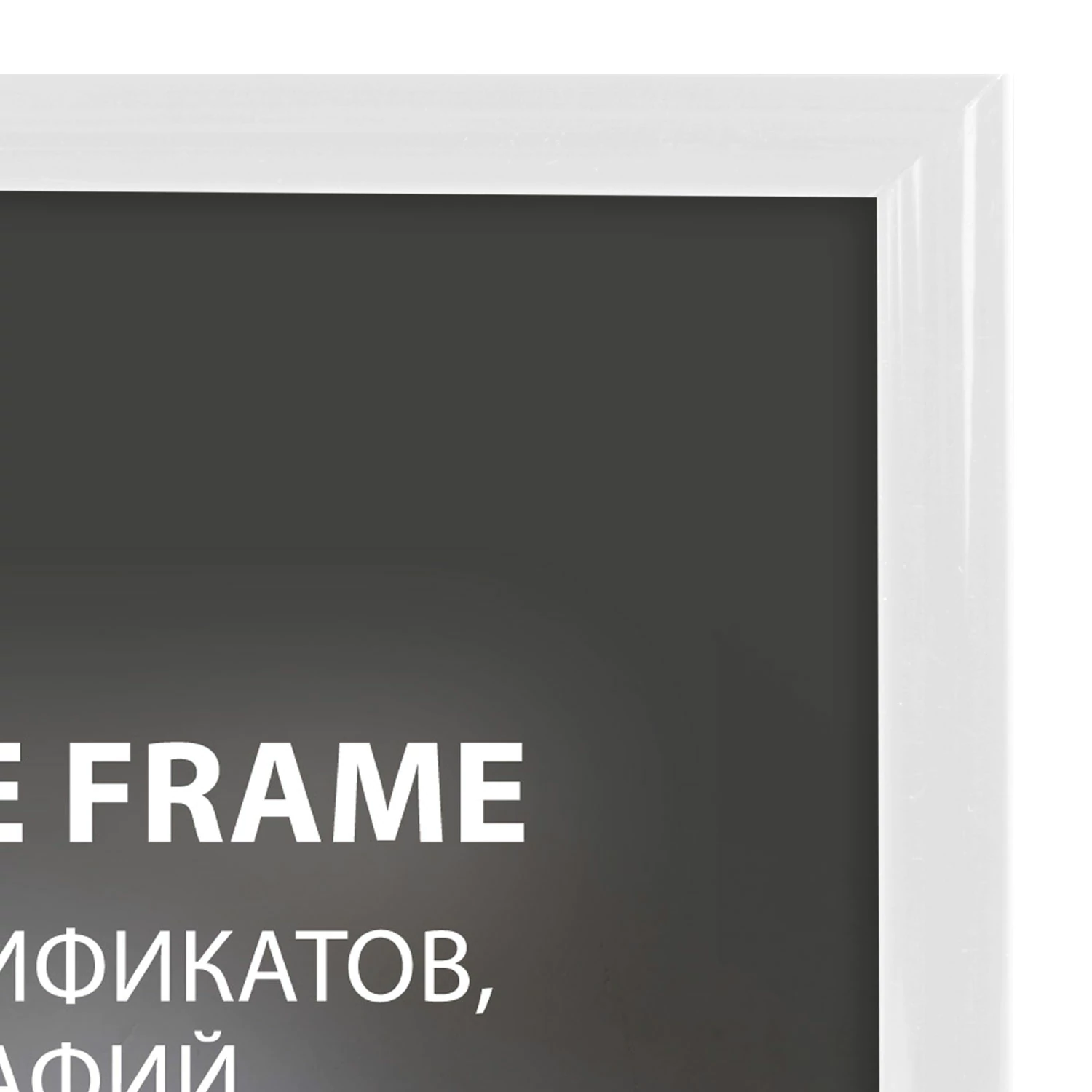 Рамка формата А4 (21х30 см) выполнена из ПВХ белого цвета, за счет чего отлично впишется в домашний и деловой интерьер. Имеется возможность вертикального и горизонтального подвеса. Особенностью данной рамки является стильный узкий багет шириной 8 мм. Благодаря вставке из пластика вместо стекла рамка является менее хрупкой. Задняя подложка рамки, выполненная из ДВП (оргалита) толщиной 23 мм, обеспечивает плотное прилегание и отсутствие в будущем деформации содержимого в рамке. Поставляется в термоусадочной пленке, которая гарантирует сохранность рамки при транспортировке, отсутствие сколов и потертостей.