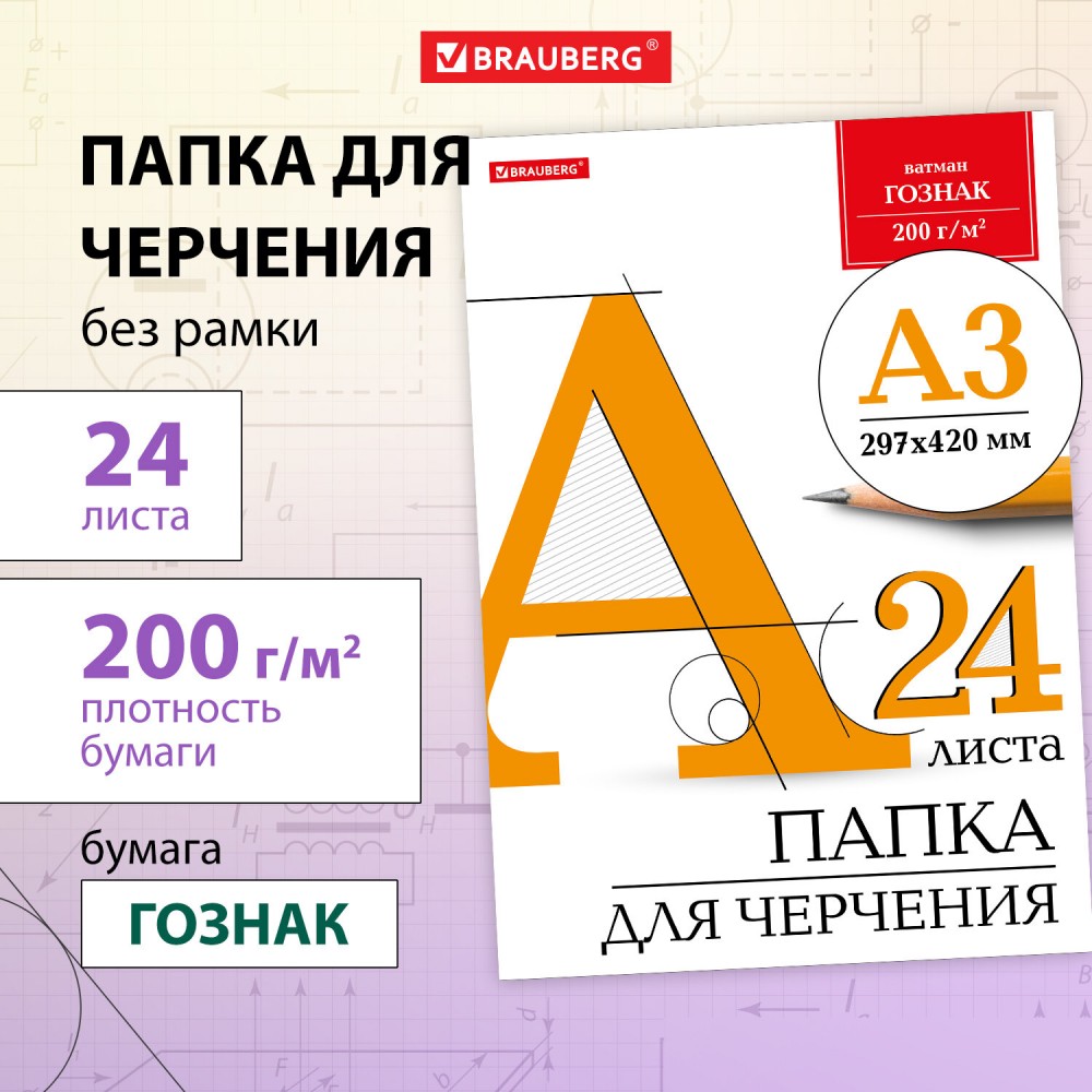 Папка для черчения BRAUBERG содержит набор листов ватмана для выполнения чертежно-графических работ карандашами, тушью и чернилами.