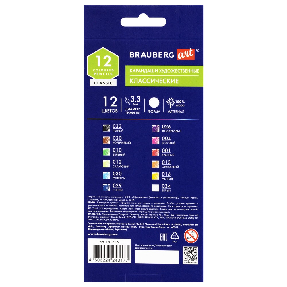 Цветные художественные карандаши BRAUBERG ART CLASSIC отличаются мягким грифелем высокого качества, который позволяет достичь насыщенности и равномерности цвета. Цвета хорошо смешиваются между собой, растушёвываются и накладываются друг на друга.
