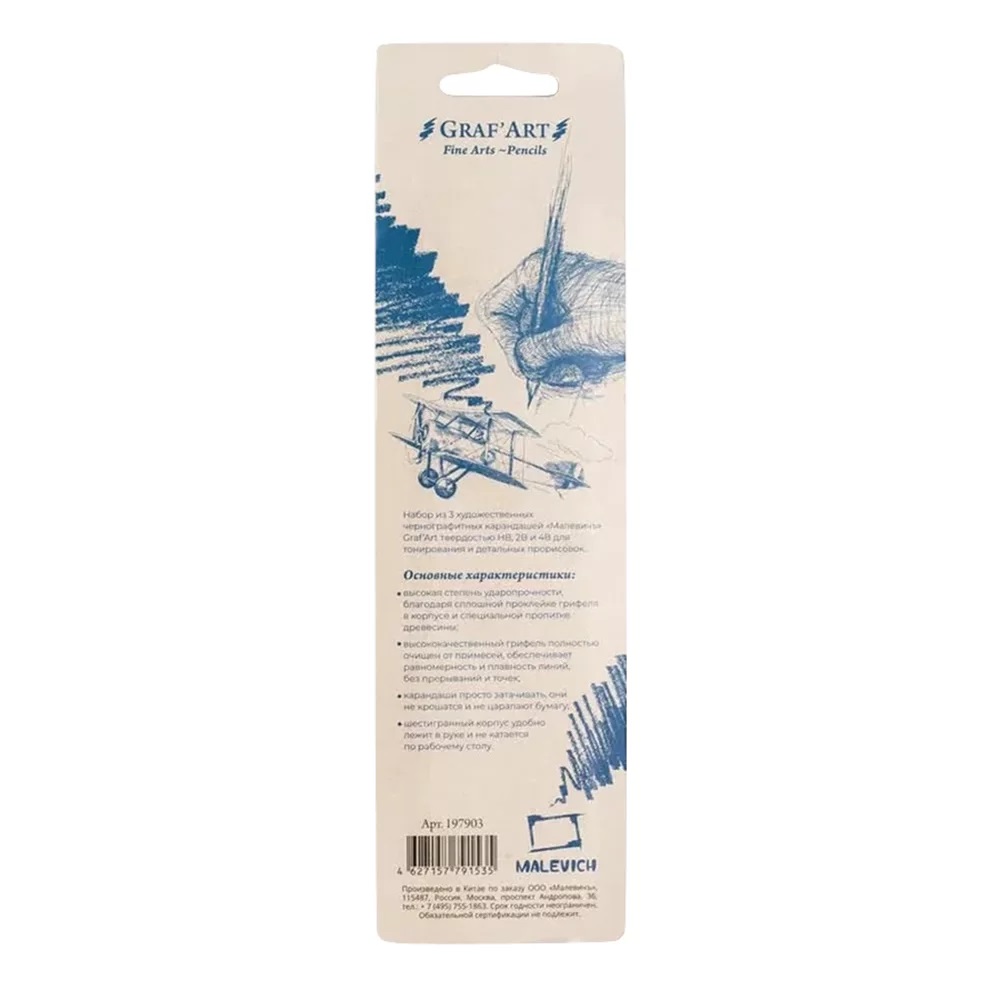 Художественные чернографитные карандаши Малевичъ Graf'Art предназначены для рисования и отвечают всем требованиям предъявляемым к профессиональной художественной продукции. Высококачественный грифель очищен от примесей за счет чего штриховка получается равномерной и четкой. Диаметр грифеля отличается в зависимости от степени мягкости карандаша. Высококачественная древесина обеспечивает легкое затачивание, корпус и грифель не крошится и остаются целыми даже при падении карандаша.