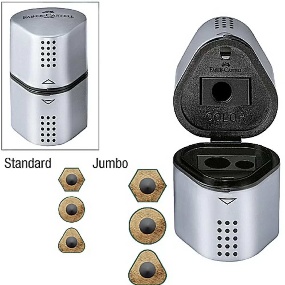 Точилка Grip 2001 Trio - это три точилки наилучшего качества и вместительный контейнером в одном корпусе. Точилка "Grip 2001 Trio" превосходно подойдет для простых и цветных карандашей, карандашей с трехгранным корпусом, для всех карандашей большого диаметра. Отверстие в верхнем корпусе предназначено также для косметических карандашей!