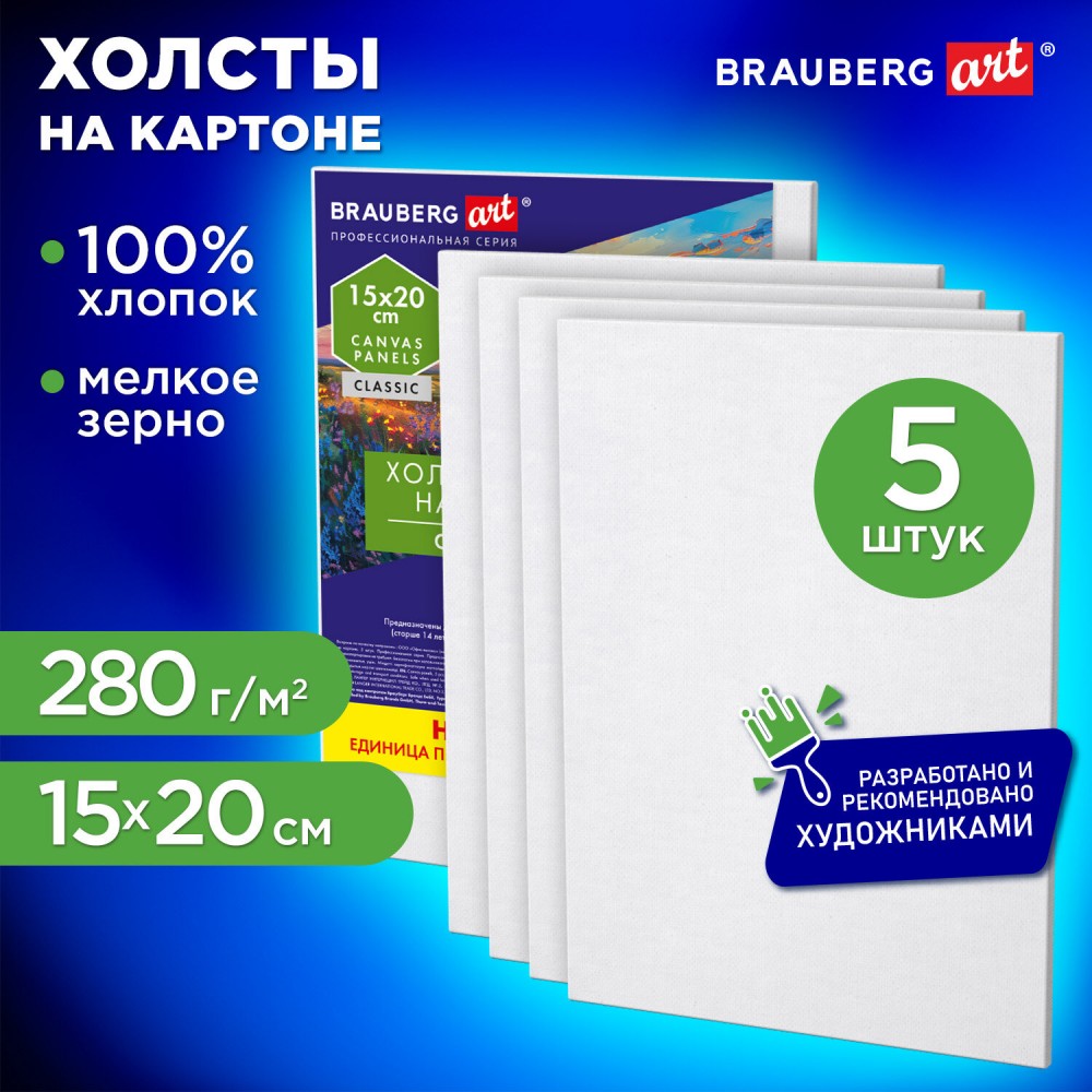 Прочная поверхность холста выдерживает множество слоев краски и воздействие разбавителей, хорошо переносит изменения влажности и температуры. Грунтованное мелкозернистое полотно из хлопка плотностью 280 г/м2 наклеено на основу из плотного картона. Холст на картоне легче и меньше по сравнению с холстами на подрамнике, тем самым он очень удобен для транспортировки. Набор из пяти холстов. Размер - 15х20 см.