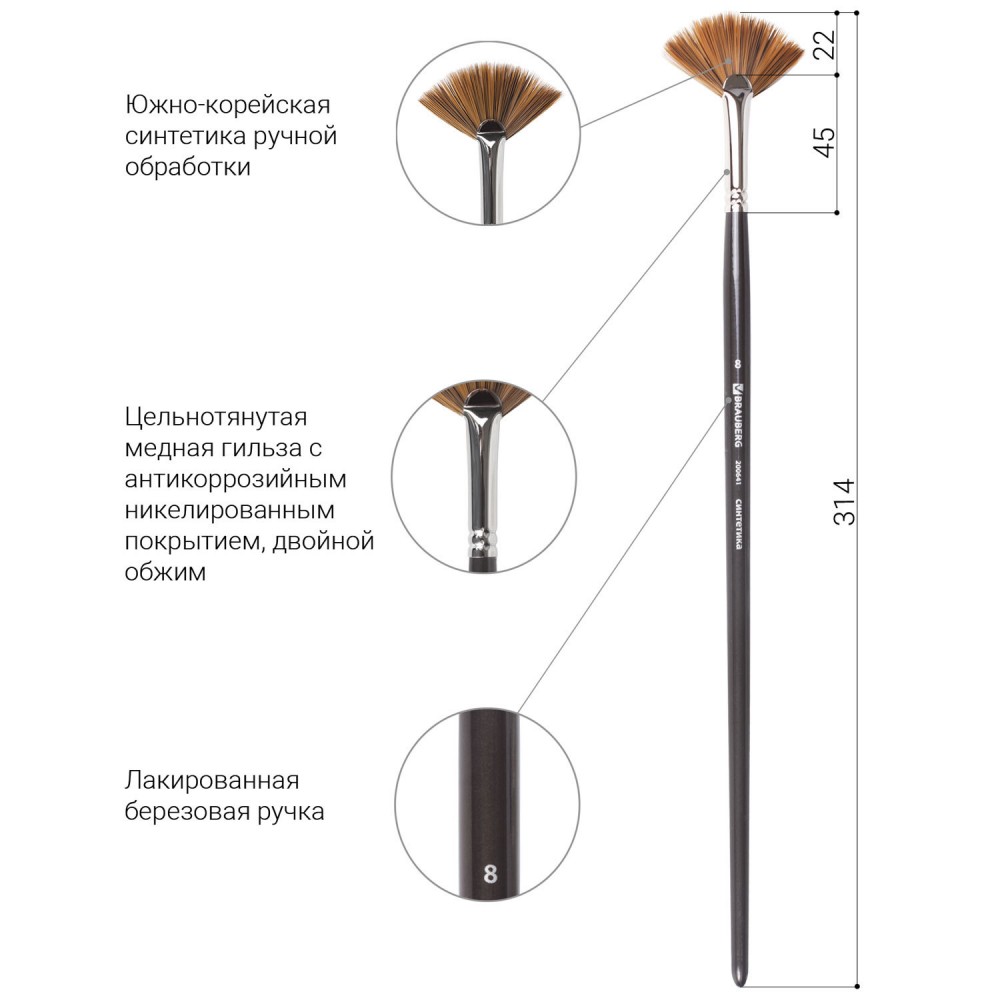 Художественная профессиональная синтетическая кисть BRAUBERG ART "CLASSIC" № 8 предназначена для растушевки краски, смешивания и смягчения контрастов и фактуры.