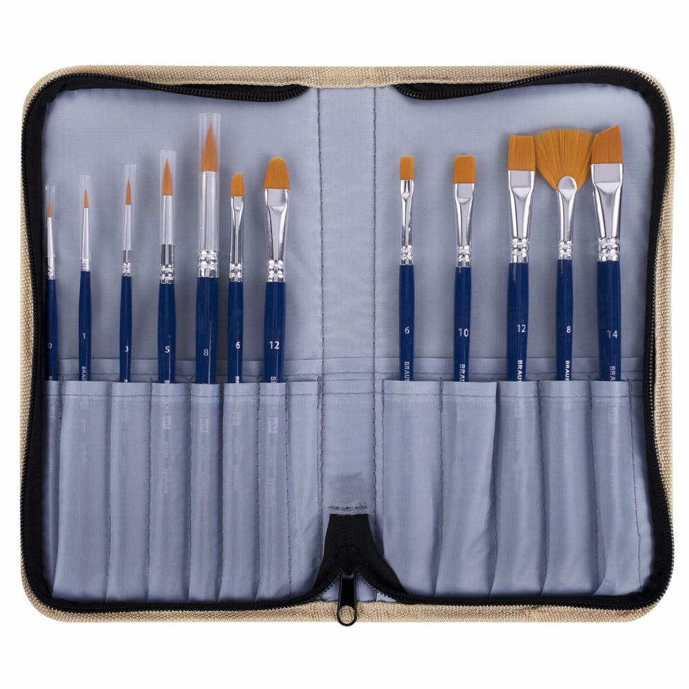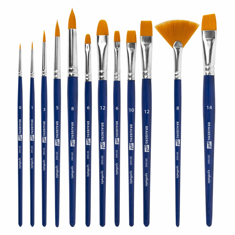 Кисти BRAUBERG ART "DEBUT" изготовлены с применением синтетики. Отличаются универсальностью в использовании, обусловленной упругостью ворса и прекрасными впитывающими свойствами пучка. Короткая ручка из древесины покрыта лаком, что защищает ее от воздействия красок и влаги. В набор входят 12 кистей различной формы. Овальные - № 6, № 12. Скошенная - № 12. Веерная - № 8. Круглые - № 0, № 1, № 3, № 5, № 9. Плоские- № 6, № 10, № 12. Номер кисти соответствует реальной ширине пучка в миллиметрах.