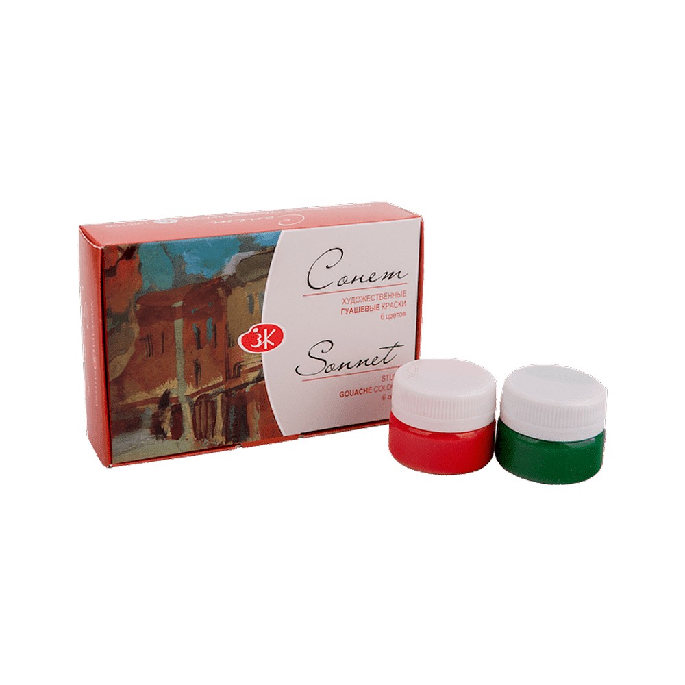 Художественные гуашевые краски серии «Сонет» предназначены для художественных и художественно-оформительских работ. Краски изготовлены по новой технологии, аналогичной производству акриловых красок: в рецептуре использованы пигментные пасты. Краски легко наносятся на бумагу и картон. Краски прекрасно смешиваются между собой и белилами, создавая новые чистые цвета. После высыхания приобретают бархатистую, матовую поверхность, легко размываются водой. Могут использоваться в художественном образовании.
