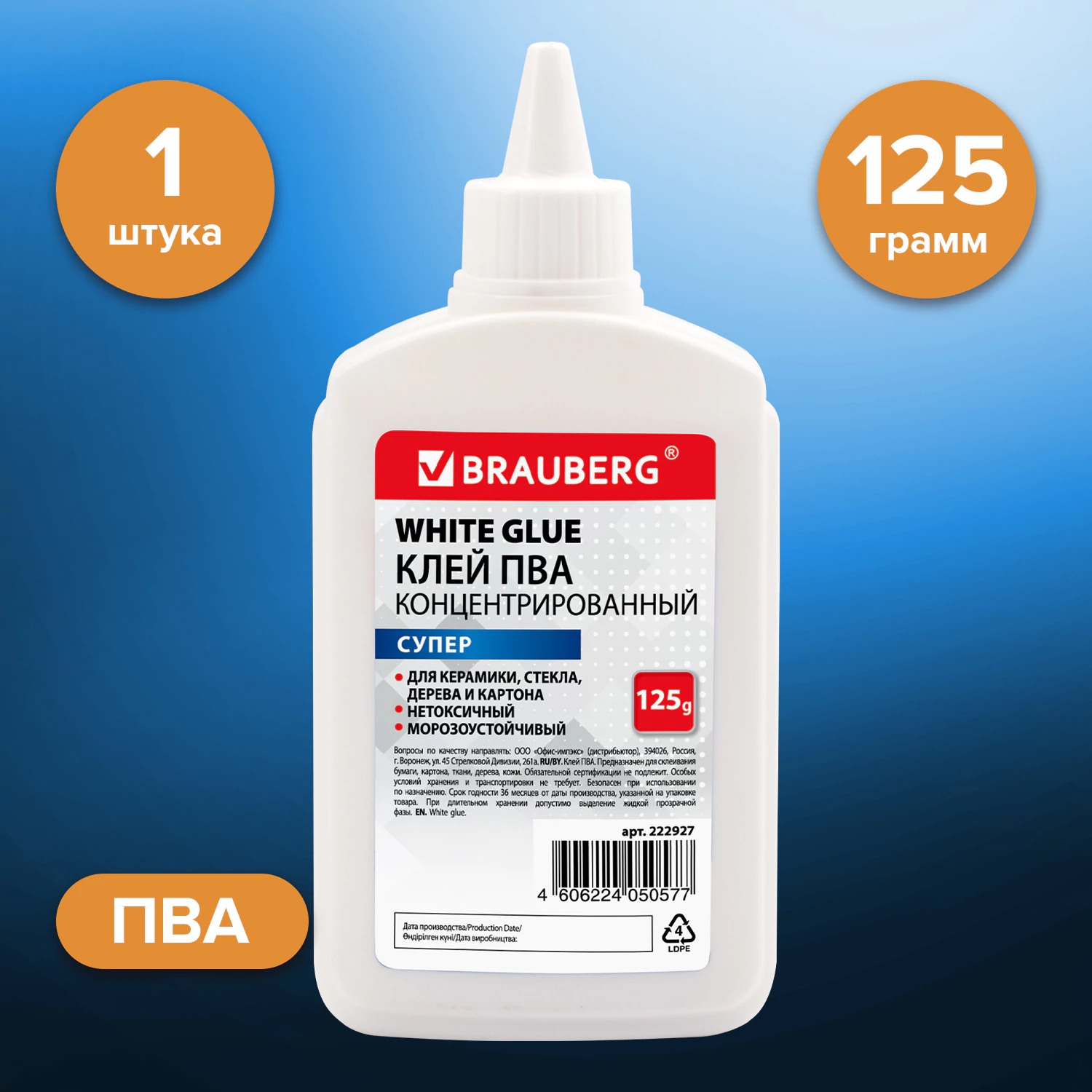 Клей ПВА СУПЕР BRAUBERG предназначен для склеивания изделий из керамики, ткани, кожи, дерева, бумаги, картона, фотографий.