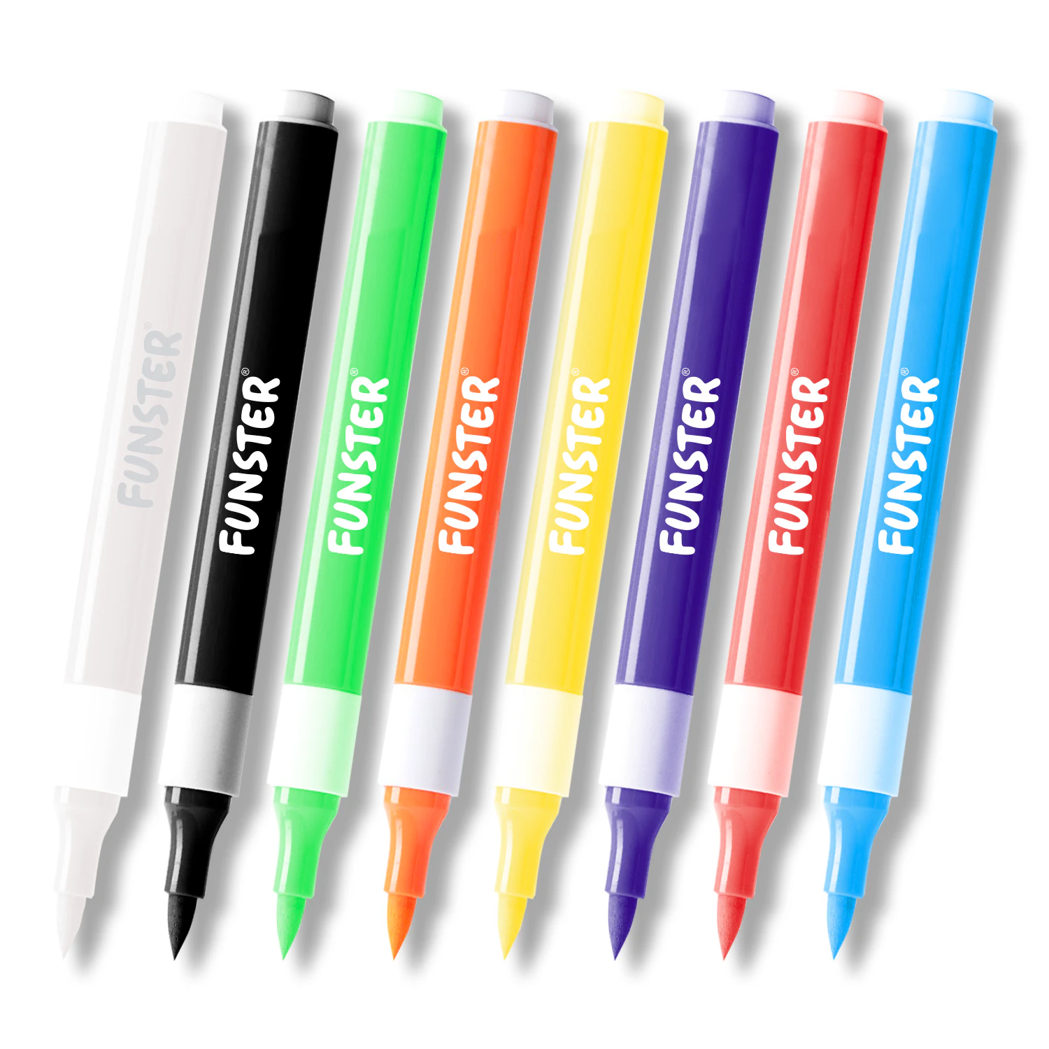 Чернила имеют нетоксичный, натуральный состав и являются абсолютно безвредными для кожи ребёнка. В набор входят 8 цветов: голубой, оранжевый, жёлтый, розовый, зелёный, фиолетовый, чёрный, белый.