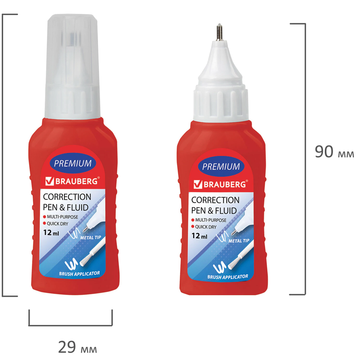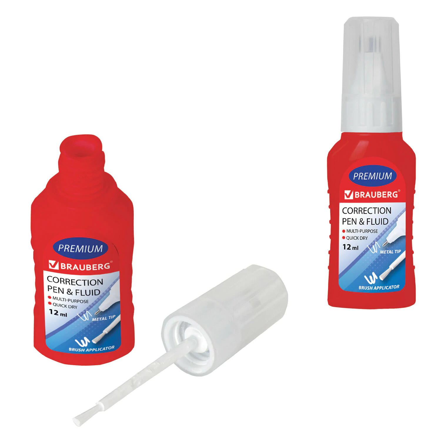 Корректирующая жидкость на быстровысыхающей основе BRAUBERG "2 в 1" справится с любыми недочетами в рукописных документах.