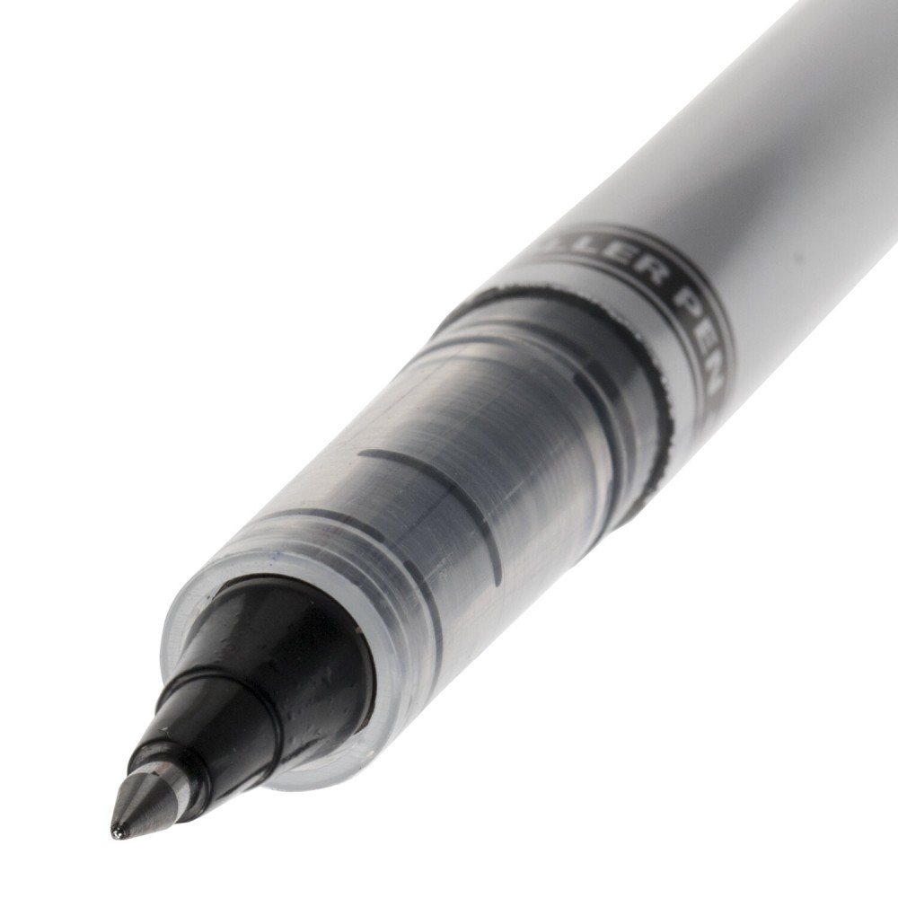Имеет круглый корпус серебристого цвета с печатью и стандартный наконечник. Цвет деталей соответствует цвету чернил. Конусообразный пишущий узел толщиной 0,5 мм создает линию письма, равную 0,3 мм. Имеется окошко для проверки уровня чернил. Подходит для письма на копиях, сделанных под копирку. Цвет чернил - синий или черный.