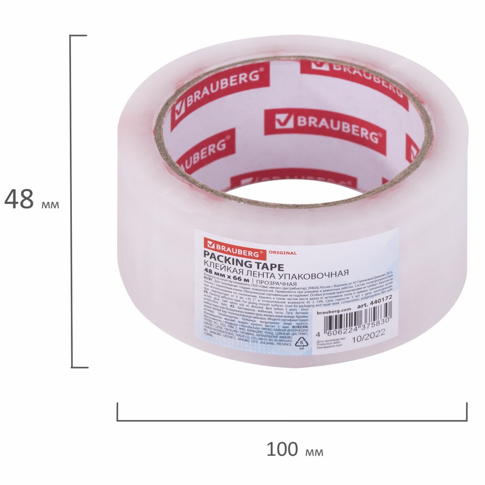 Упаковочная клейкая лента BRAUBERG ORIGINAL активно используется в торговле, промышленности, быту и подходит для оперативной упаковки с помощью диспенсера или вручную. Отличается высокой адгезией клея (прилипанием к поверхности) и стойкостью к разрыву.