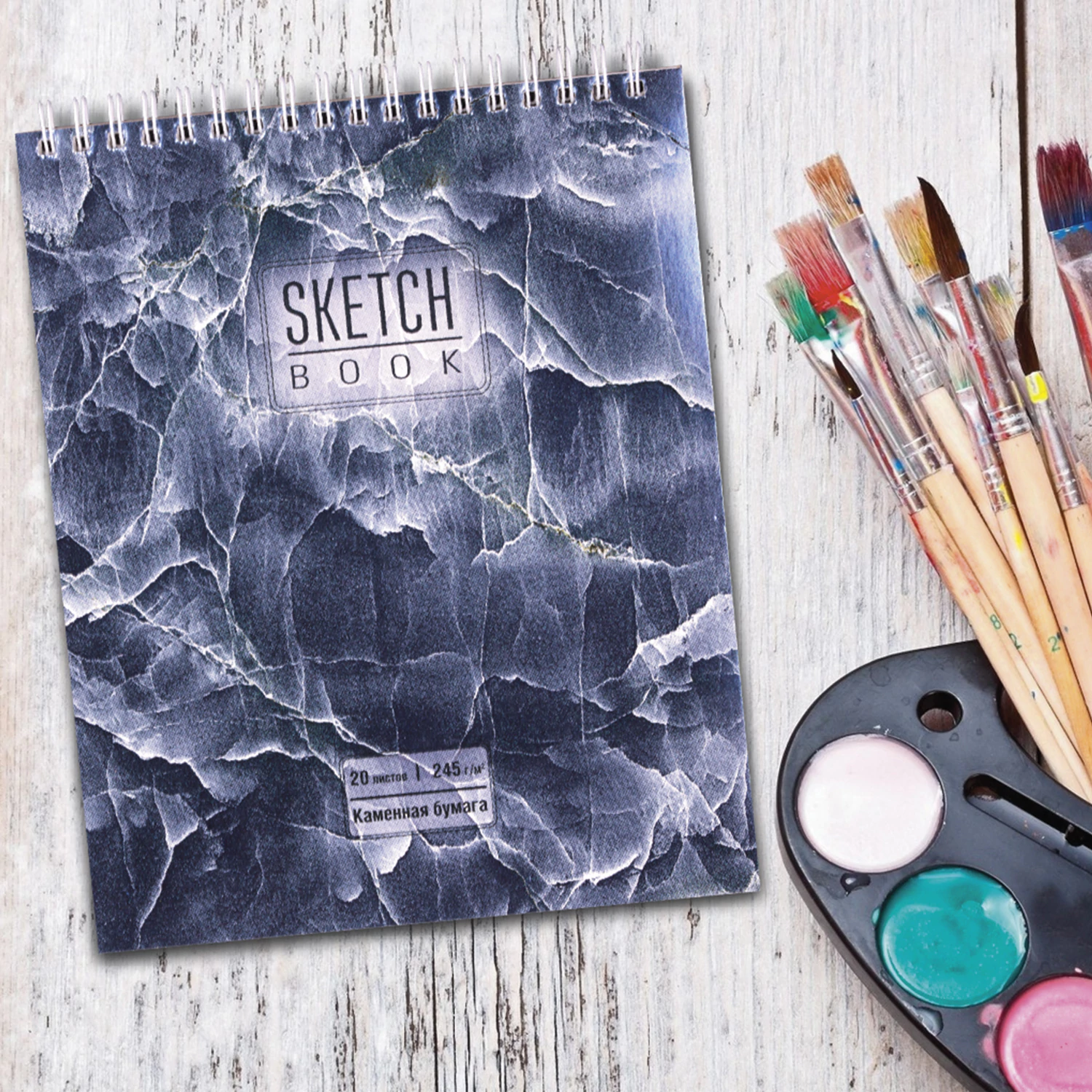 Скетчбук "СИНИЙ МРАМОР" предназначен для эскизов и зарисовок в различных техниках рисования: карандаш, пастель, сангина, уголь, маркер.