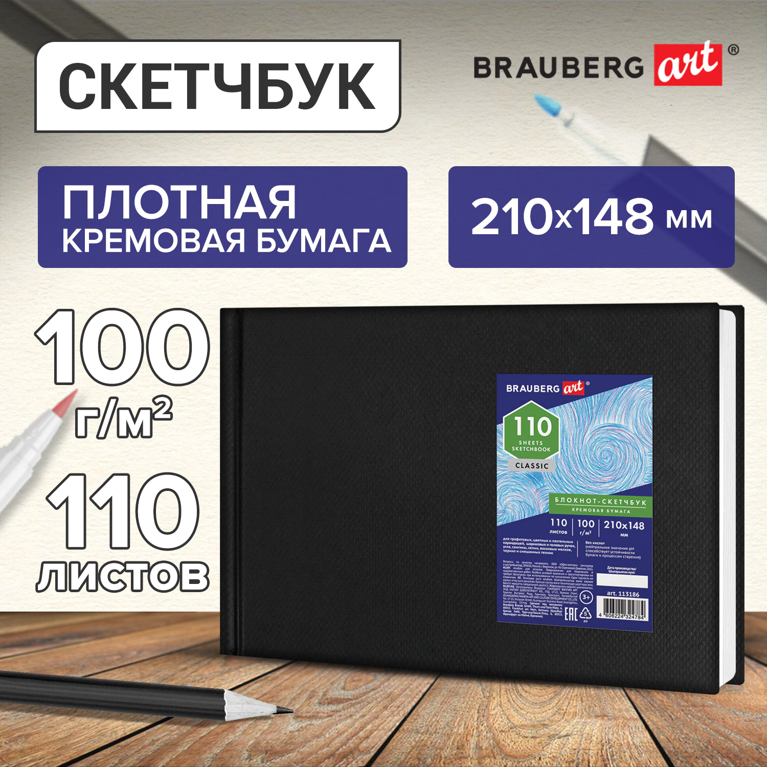 Скетчбук BRAUBERG ART для эскизов и графики. Внутренний блок - специальная художественная бумага кремового оттенка с легкой зернистой фактурой. Подходит для работы с широким спектром графических материалов (уголь, соусы, карандаши и прочие).