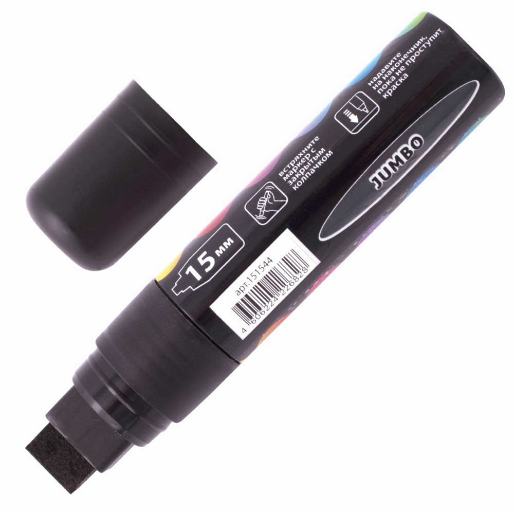 Предназначен для росписи, создания рисунков и надписей на зеркалах, стекле, меловой пленке и прочих гладких и прозрачных невпитывающих поверхностях. Рисунок получается плотный и яркий. Чернила на водно-меловой основе черного цвета без резкого запаха. Толщина линии письма - от 2 мм до 15 мм, зависит от угла наклона мелового маркера. Круглый корпус выполнен из пластика.