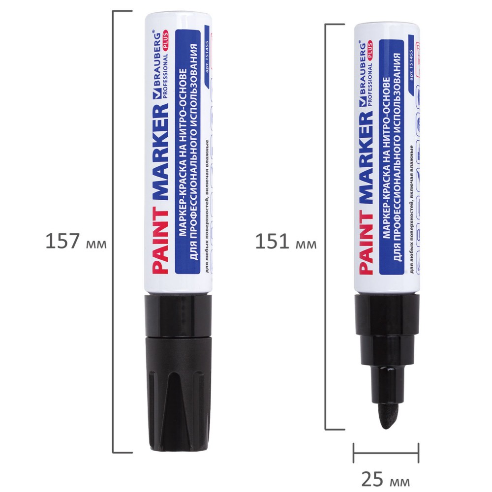 Маркер-краска лаковый BRAUBERG предназначен для маркировки различных материалов в промышленных условиях: бетона, дерева, стекла, металла, резины, пластика. Заправлен краской с усиленной формулой на нитро-основе РМ-14.