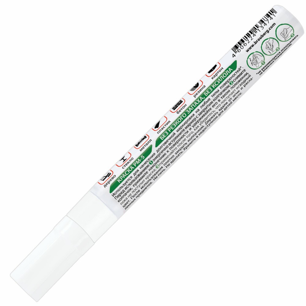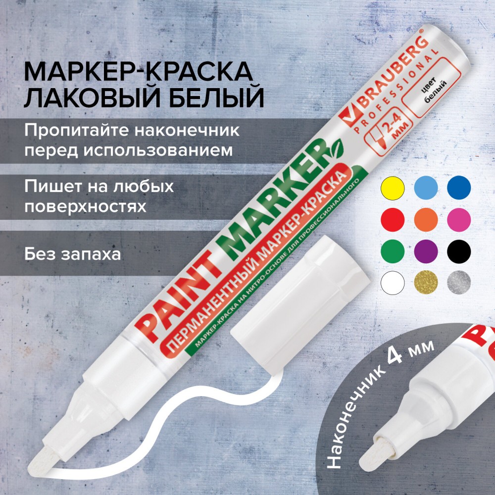 Маркер-краска лаковый BRAUBERG предназначен для маркировки различных материалов в промышленных условиях: бетона, дерева, стекла, металла, резины, пластика. Также подходит для творчества и декорирования.