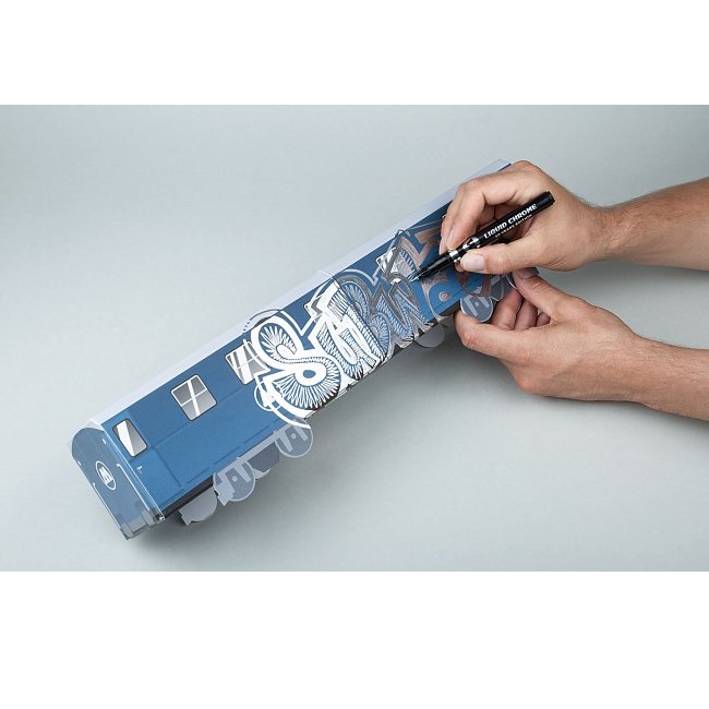 Маркер Molotow Liquid Chrome - жидкий хром с наконечником 1мм, идеально работает на гладких не впитывающих поверхностях, например: дерево, металл, стекло, резина, бумага, стекло, пластик. Максимальный из возможного зеркальный эффект. Краска устойчива к УФ-излучению и механическим воздействиям. Сделано в Германии.