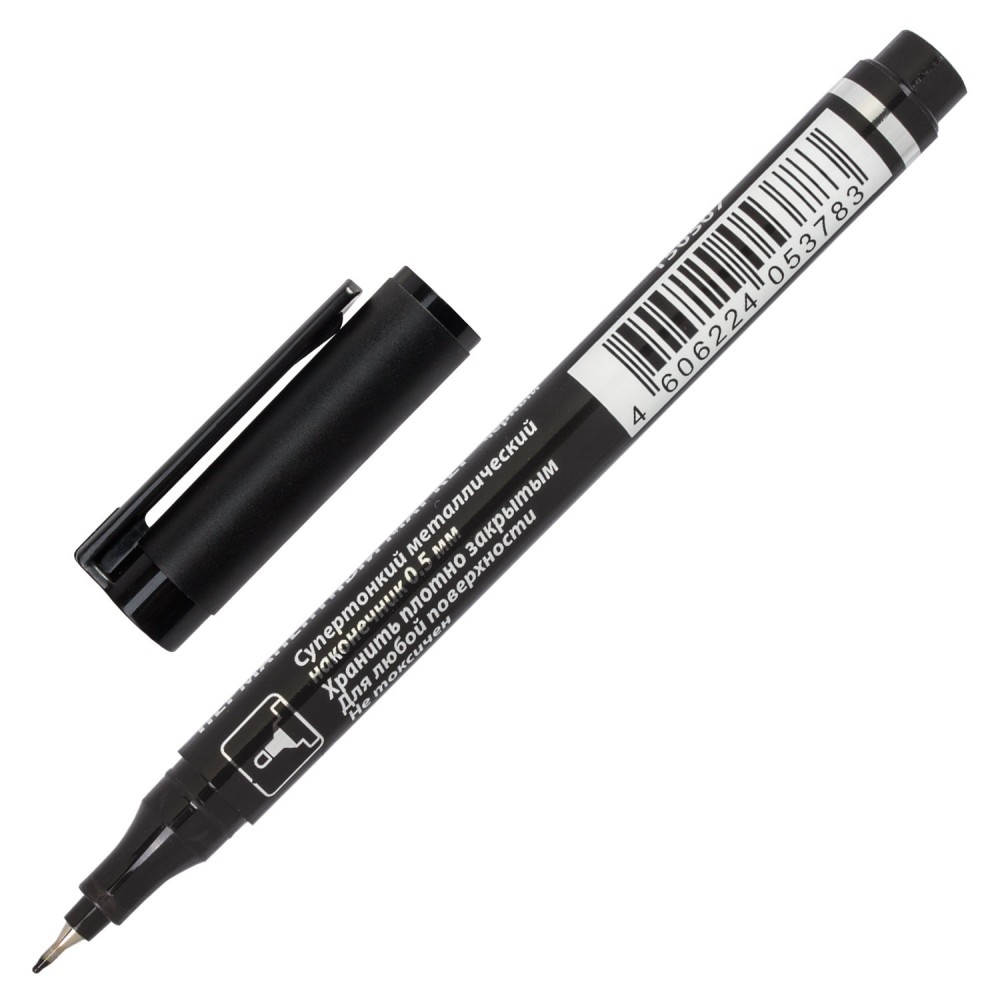 Маркер перманентный черного цвета обладает круглой формой корпуса из пластика, диаметр которого 10 мм. Толщина линии письма - 0,5 мм. Особая нестираемая основа перманентного маркера обеспечивает такие качества, как стойкость к воздействию воды, ультрафиолету, низких и высоких температур. Благодаря спиртовой основе чернила быстро сохнут и не размазываются. Износостойкий фетровый наконечник устойчив к повреждениям и обеспечивает экономный расход чернил.