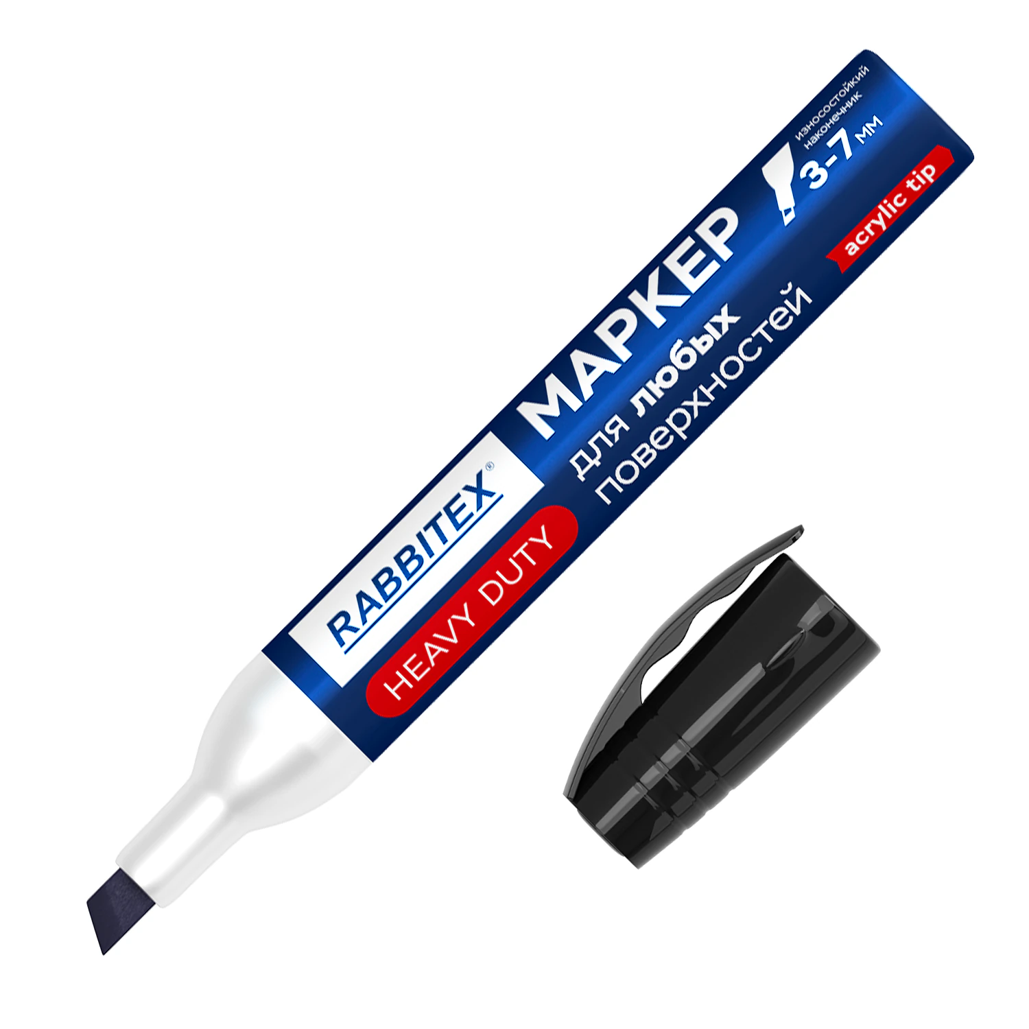 Маркер перманентный строительный RABBITEX HEAVY DUTY предназначен для стойкой маркировки на самых сложных и разнообразных поверхностях: металле, стекле, маслянистых, шероховатых, влажных материалах, дереве, керамике, камне, пластике, картоне, бетоне.