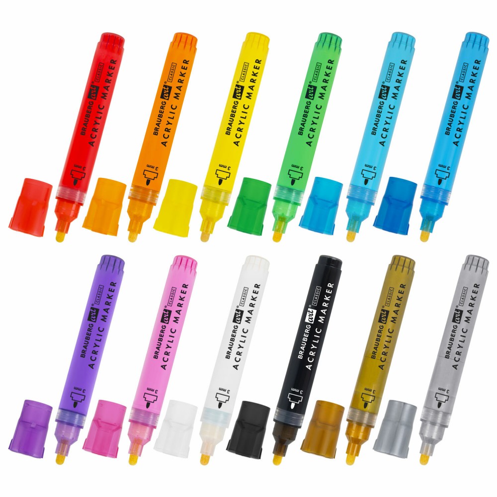 Набор маркеров акриловых BRAUBERG ART CLASSIC – это универсальный инструмент для письма, рисования и декорирования. Предназначены для использования на плотной бумаге, холсте, дереве, керамике, камне, стекле, коже.