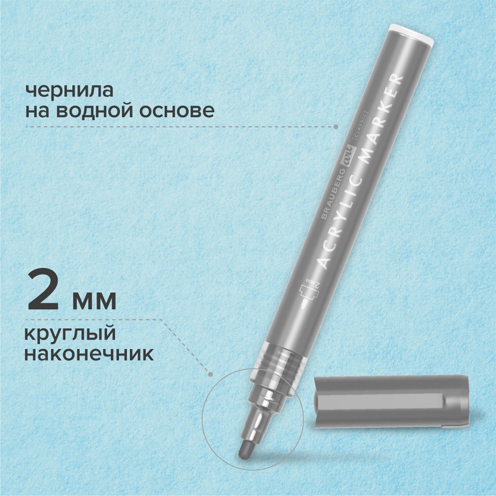 Набор маркеров акриловых BRAUBERG ART CLASSIC - это универсальный инструмент для письма, рисования и декорирования. Предназначены для использования на плотной бумаге, холсте, дереве, керамике, камне, стекле, коже.